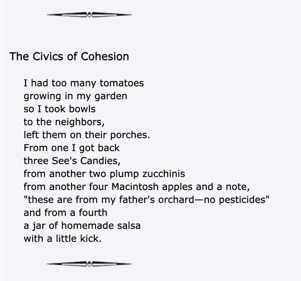 On April 1, 2026 in the community of online poetry journal Verse-Virtual, this poem of mine about “neighboring” appeared. Read it HERE. A big”thank you” to Verse-Virtual Editor Jim Lewis.